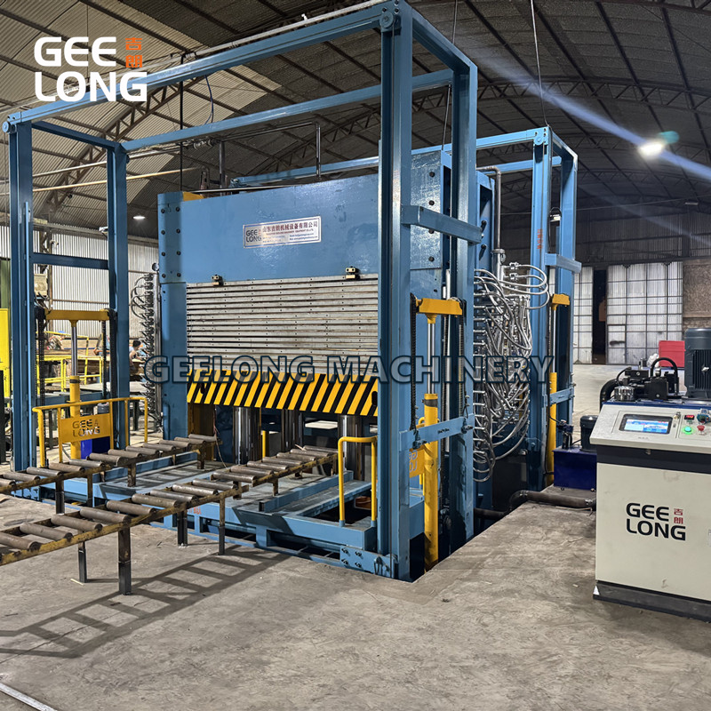 Специализированный станок горячего прессования размером 5x5 футов (1525x1525 мм) для ламинированной фанеры. Предназначен для ламинирования высокой плотности с равномерным распределением тепла и давлением 800–1200 Т. Идеально подходит для 15- или 20-слойных производственных линий.